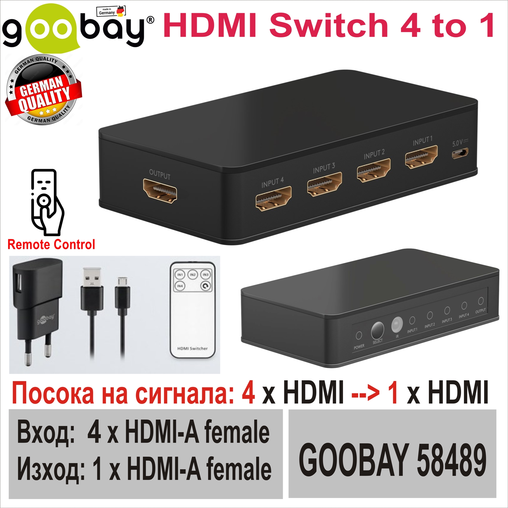 HDMI™ Switch 4 към 1 (4K @ 60 Hz) - за превключване между 4x HDMI...