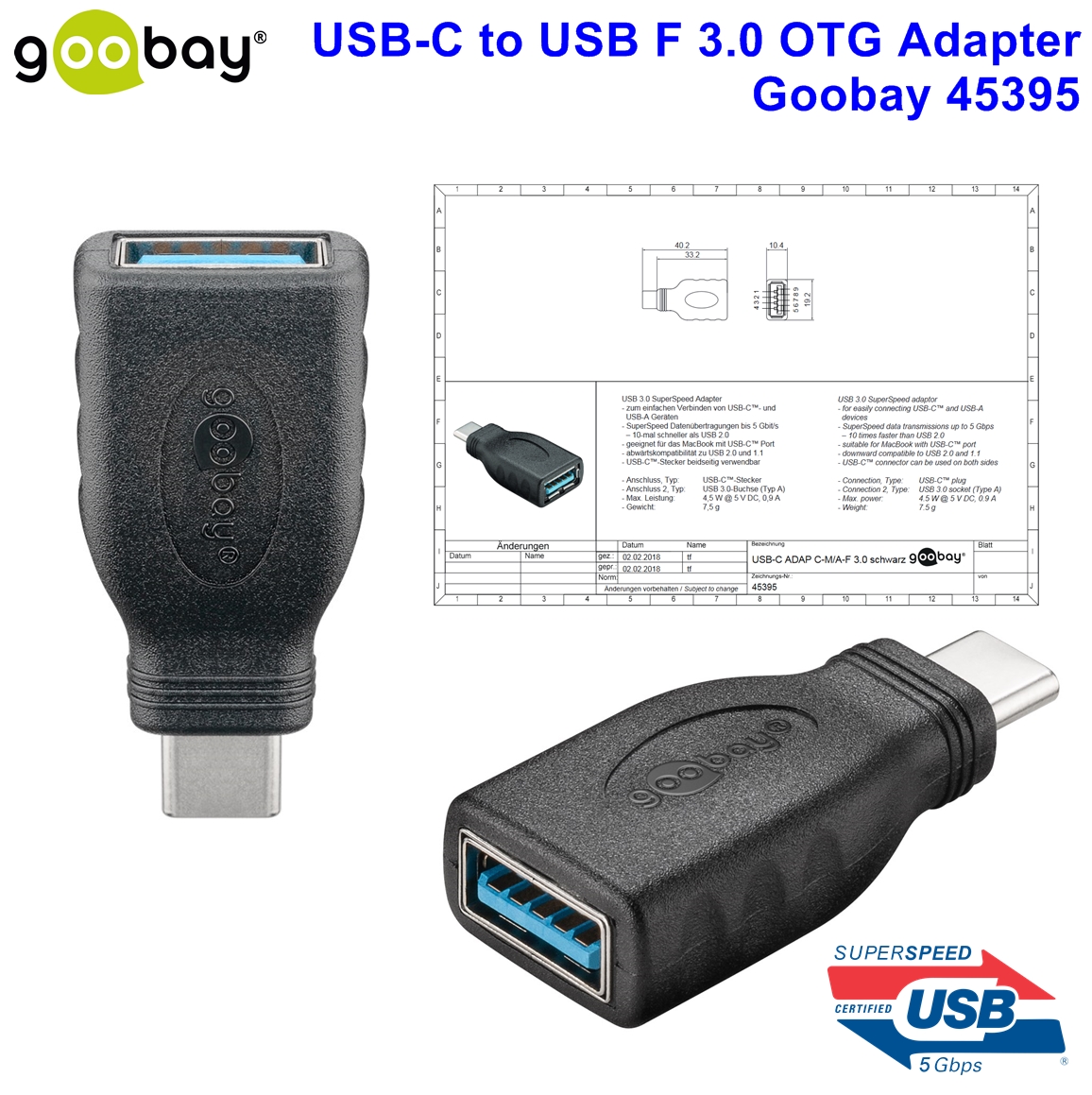 USB-C to USB F 3.0 OTG Adapter Goobay 45395 USB-C™ male >...